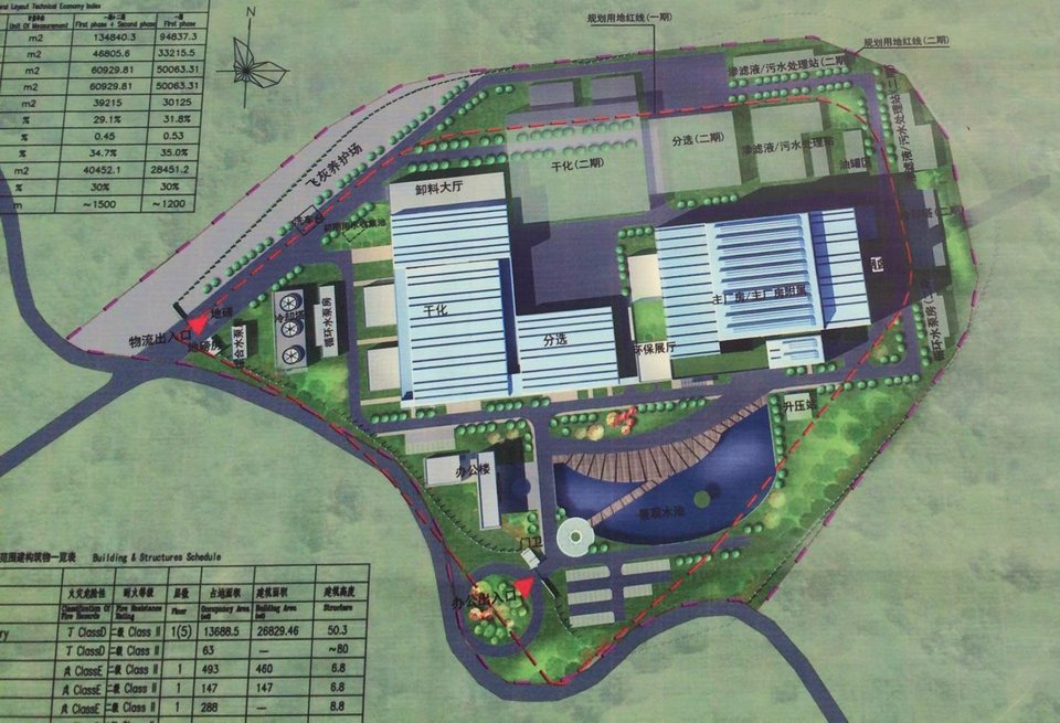 處理工藝:原生垃圾→垃圾池→垃圾破碎→生物干化→機(jī)械分選→垃圾燃料→焚燒發(fā)電